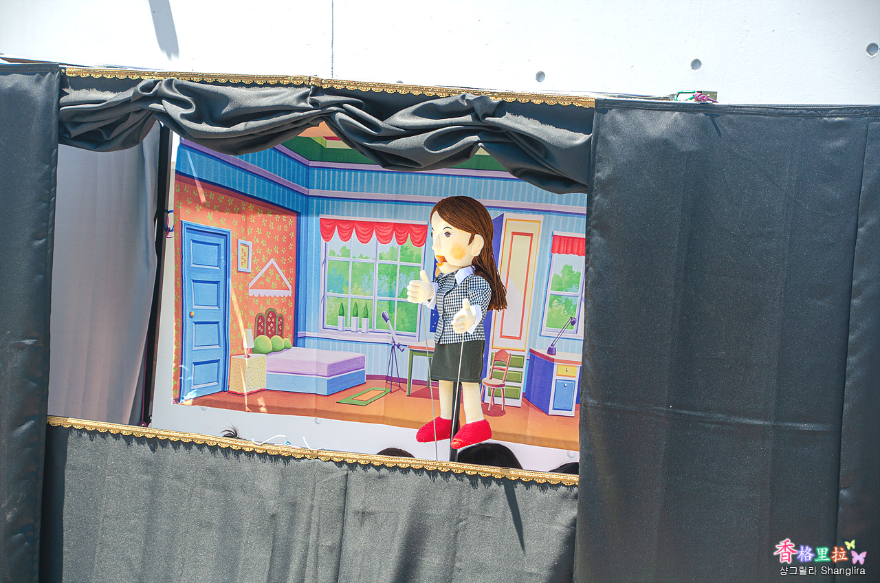 어린이들을 위한 무대가 펼쳐지고 있는데 배우들의 표정연기가 진지하다.