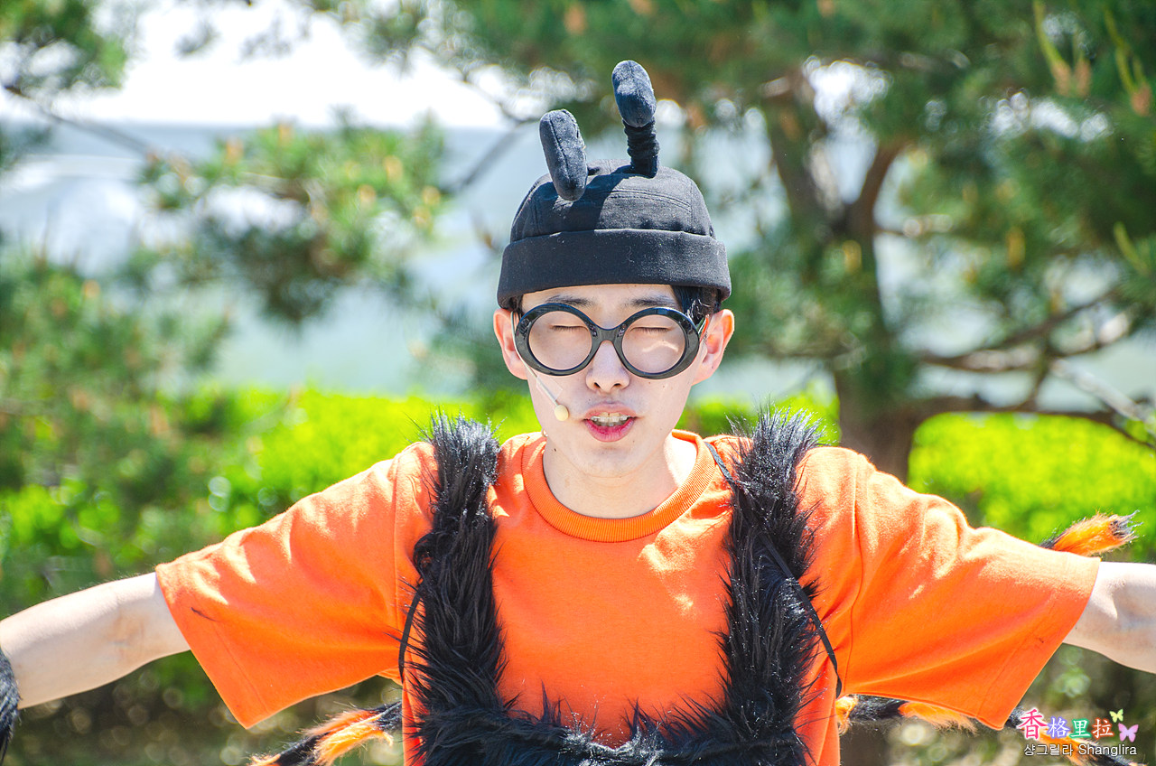 어린이들을 위한 무대가 펼쳐지고 있는데 배우들의 표정연기가 진지하다.