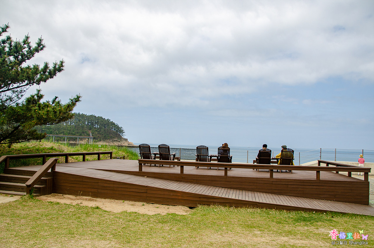 노을길 데크를 따라 걷다보면 바로 천리포해수욕장이 보이고 바다가 보인다.