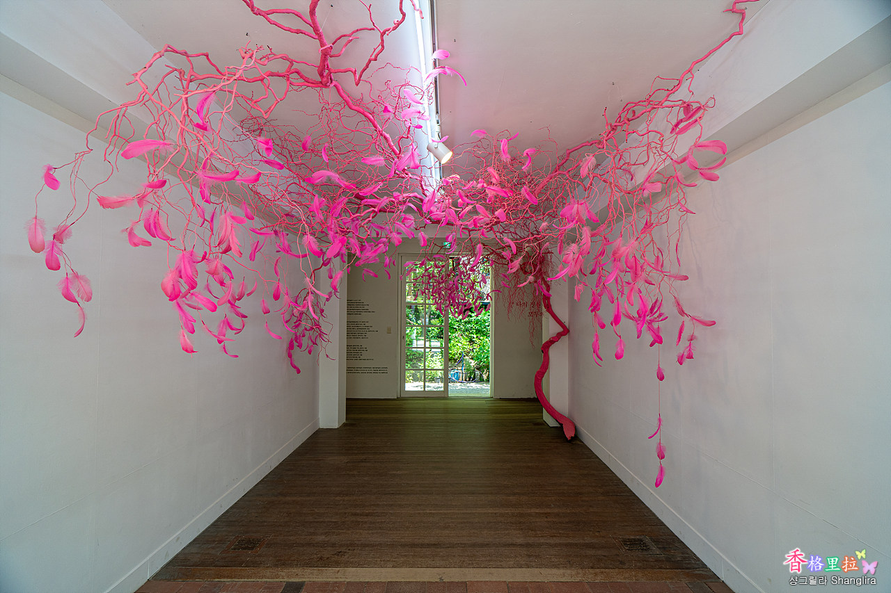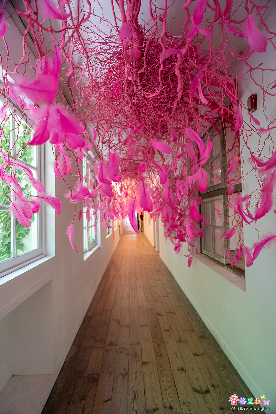 입구에 들어서자 마자 강렬한 분홍 설치물이 시선을 끈다. 절로 사진을 찍고 싶게 한다.