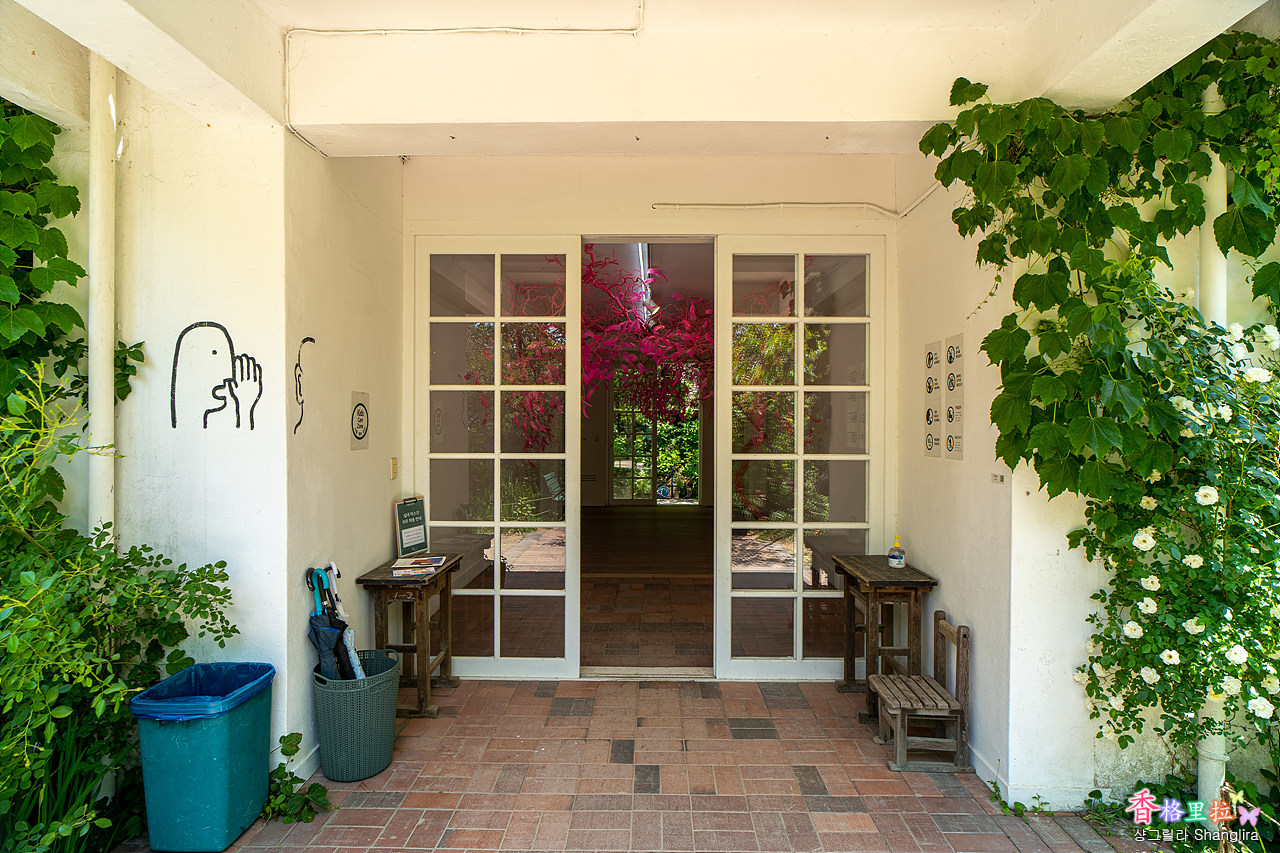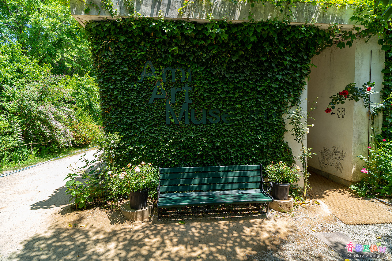 담쟁이가 뒤덮인 담앞에 아미미술관(Ami Art Museum) 로고가 보인다.