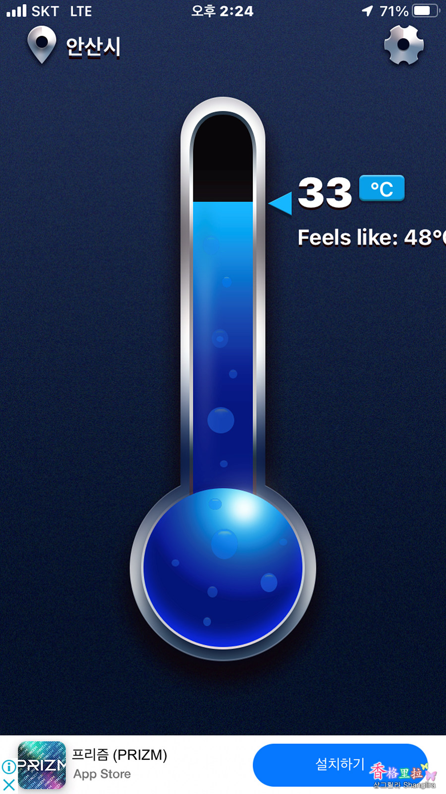 (이 온도계는 실제 내부 온도계가 아니라 현재 지역 온도를 표시하는 것이라 측정이 잘못되었다)