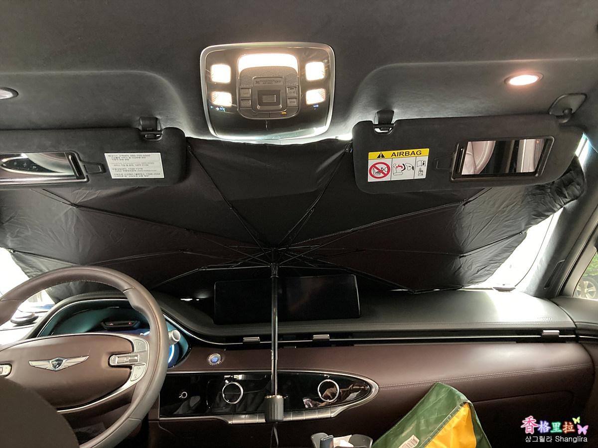 아내의 차량용은 접이식 우산 형태의 햇빛가리개를 선택했다.