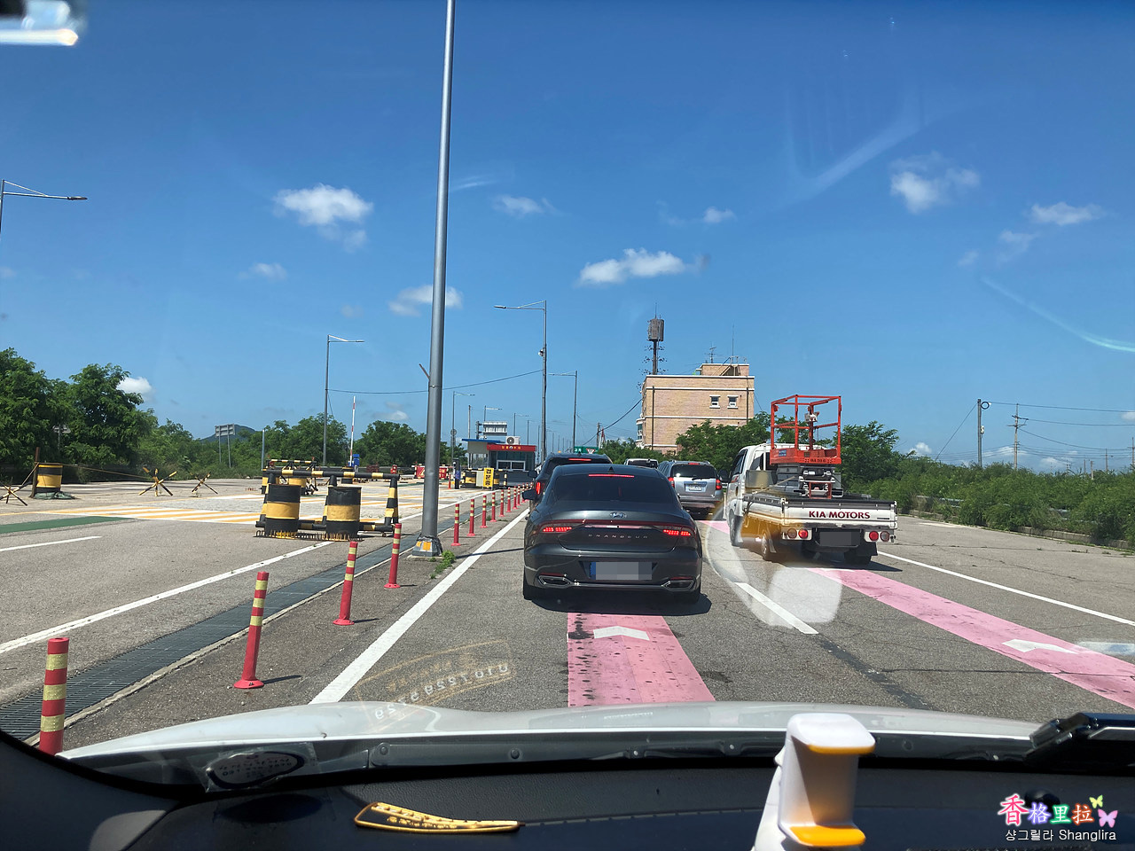 강화대교를 건너 오른쪽 도로로 돌아 한참을 달리다 보니 검문소가 나온다. 앞의 검문소에서 군인이 먼저 방문 신청서를 나눠주면 줄 서서 대기하다가 뒤 검문소 군인에게 신분증을 건네면 신청서에 군인이 직접 신청서를 작성 후 전화번호 묻고 출입증을 내준다.