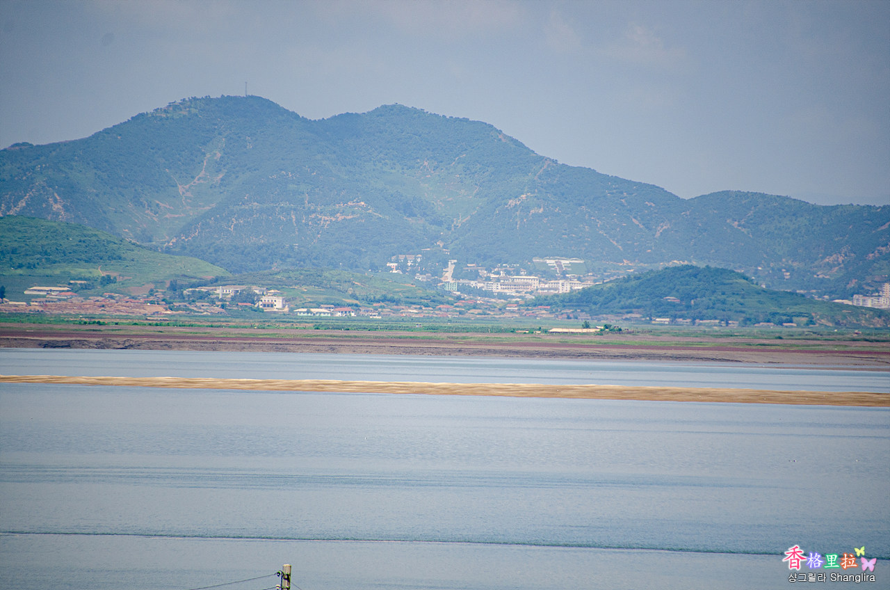 육안으로는 잘 보이지 않는 북한 땅, 쌍안경으로 들여다보니 선명하게 보이는데 사람들은 보이지 않는 것 같다.