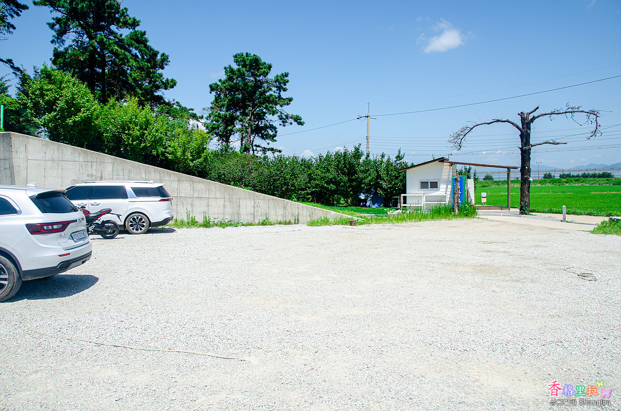 입구에 도착하고 보니 작은 주차장(무료)이 보인다. 입구의 자판기는 고장이라고 써 붙여져 있고 앞에 화장실이 있다.