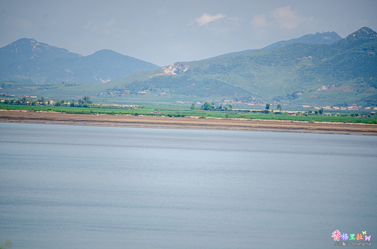 육안으로는 잘 보이지 않는 북한 땅, 쌍안경으로 들여다보니 선명하게 보이는데 사람들은 보이지 않는 것 같다.