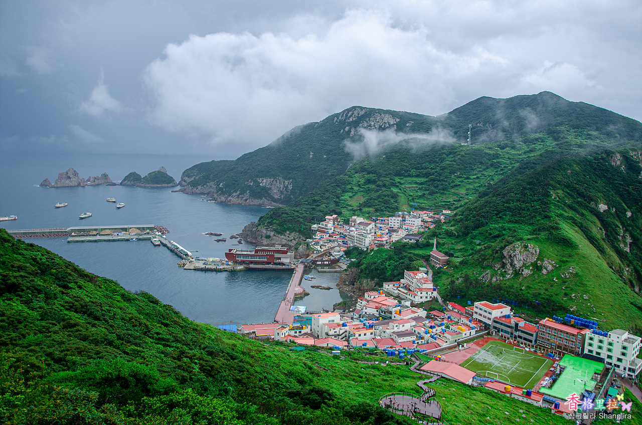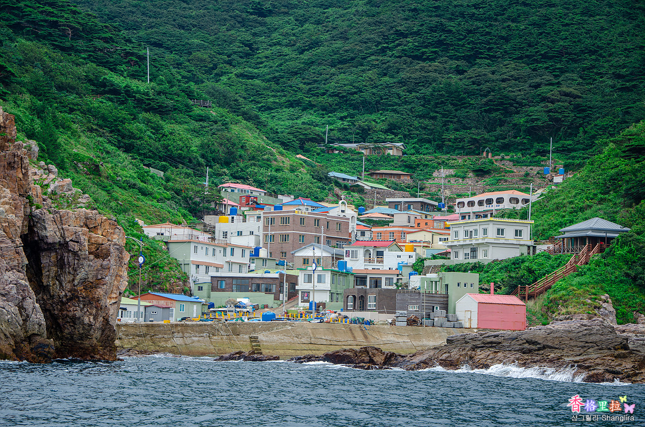 홍도 여객선 터미널이 있는 섬 반대편의 아담한 작은 마을도 보인다.