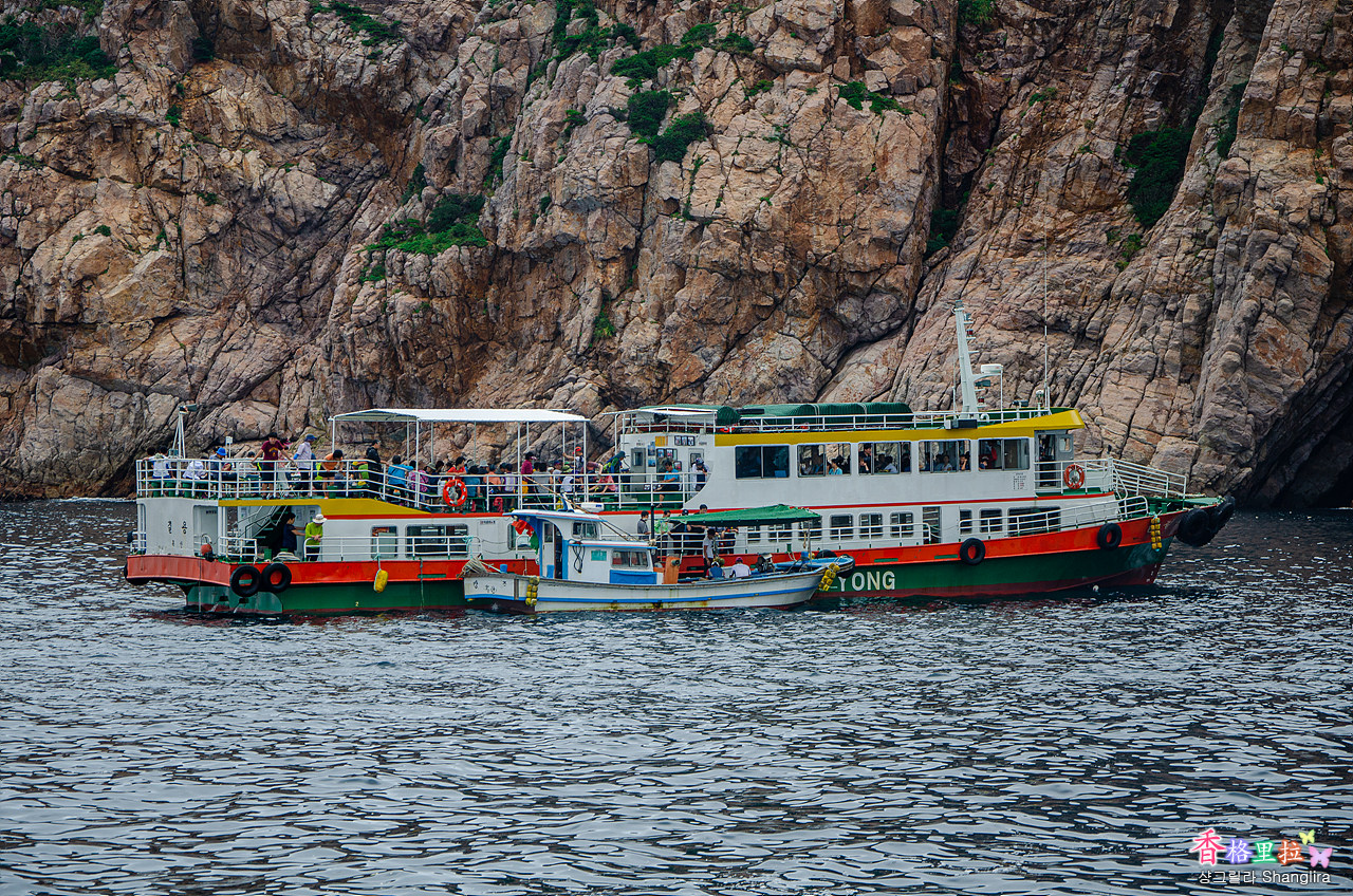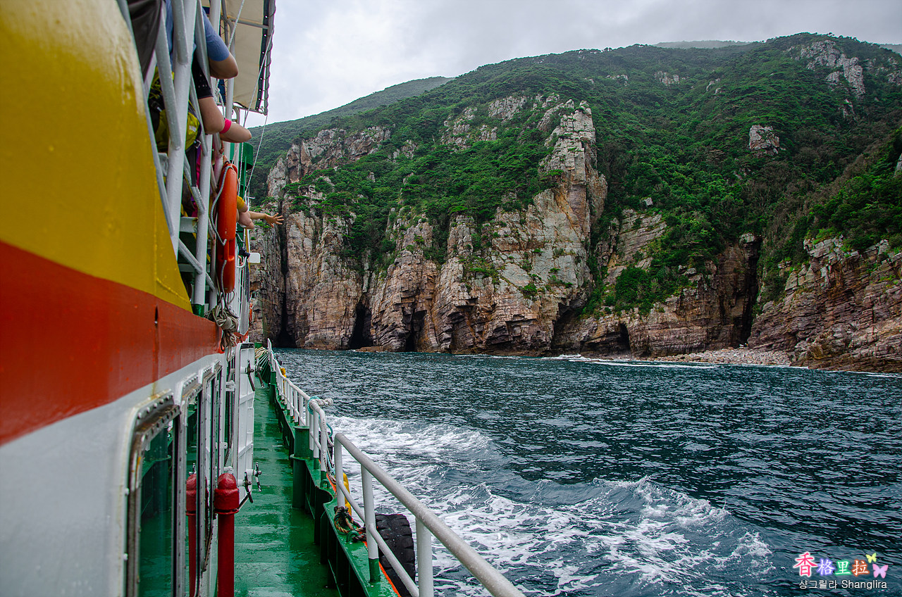 다행히 바람이 안 불고 비가 그쳐 홍도 일주 유람선이 운항을 해서 유람선을 탔다.