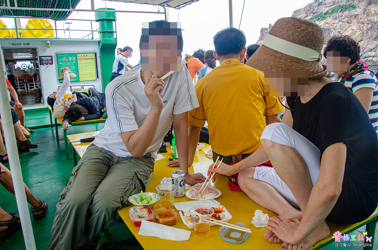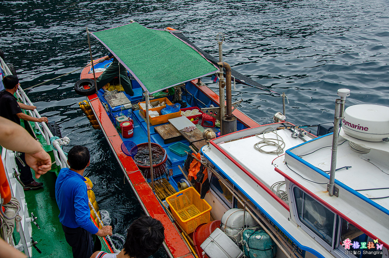 유람선 여행의 하이라이트는 홍도 여객선 터미널에 되돌아오기 전에움직이는 횟집에서 먹는 회 한 접시.