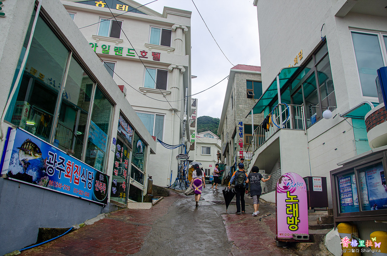 비 맞으며 담은 홍도의 마을 풍경은 온통 빵간색이다. 지붕을 빨간색으로 통일하기로 하기로 했나?