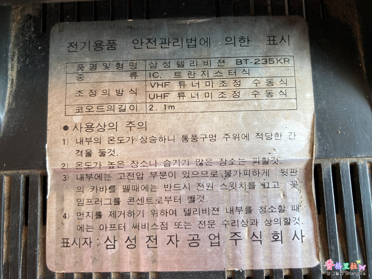 품명 및 형명에 삼성 텔리비젼 BT-235KR이라 적혀있다.