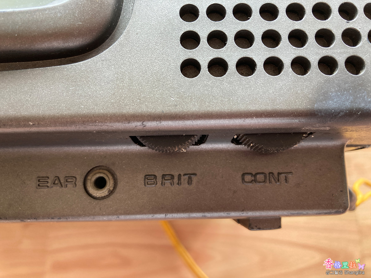 하부에 EAR(Phone) 단자와 Brit(ness), Cont(rast) 조절용 볼륨이 있다.