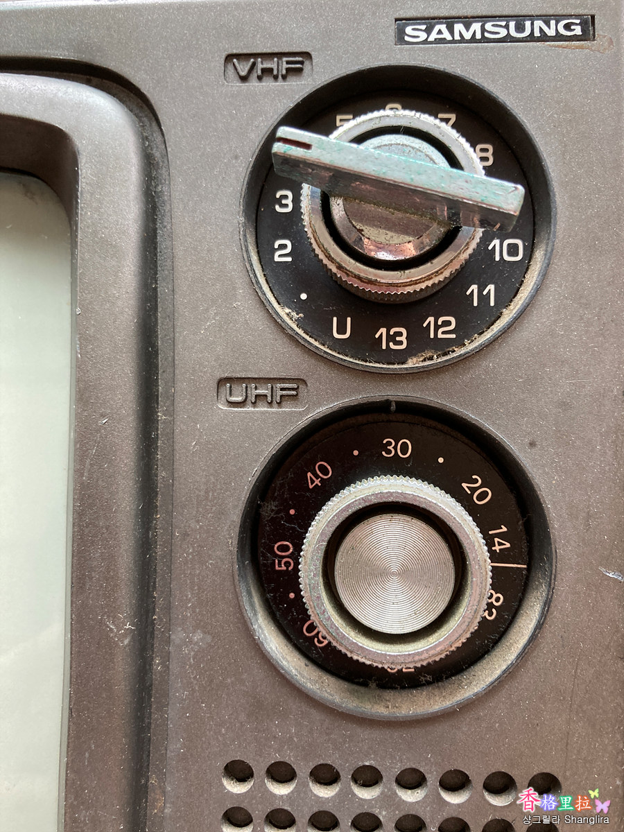 전면 상부에 VHF와 UHF 로터리식 채널이 있다.