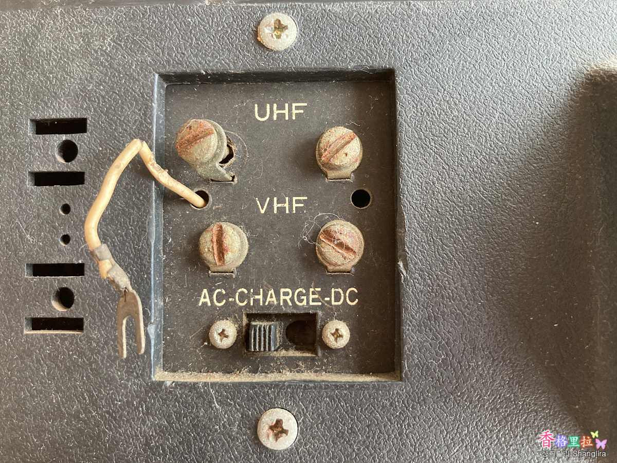 전면 상부에 VHF와 UHF 로터리식 채널이 있다.