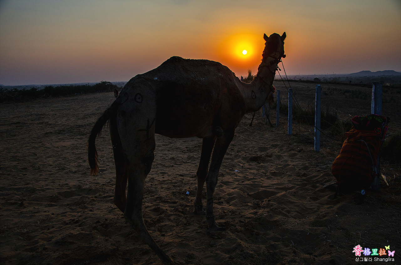 인디아의 사막에서 낙타를 타고 가서 노숙하는 날