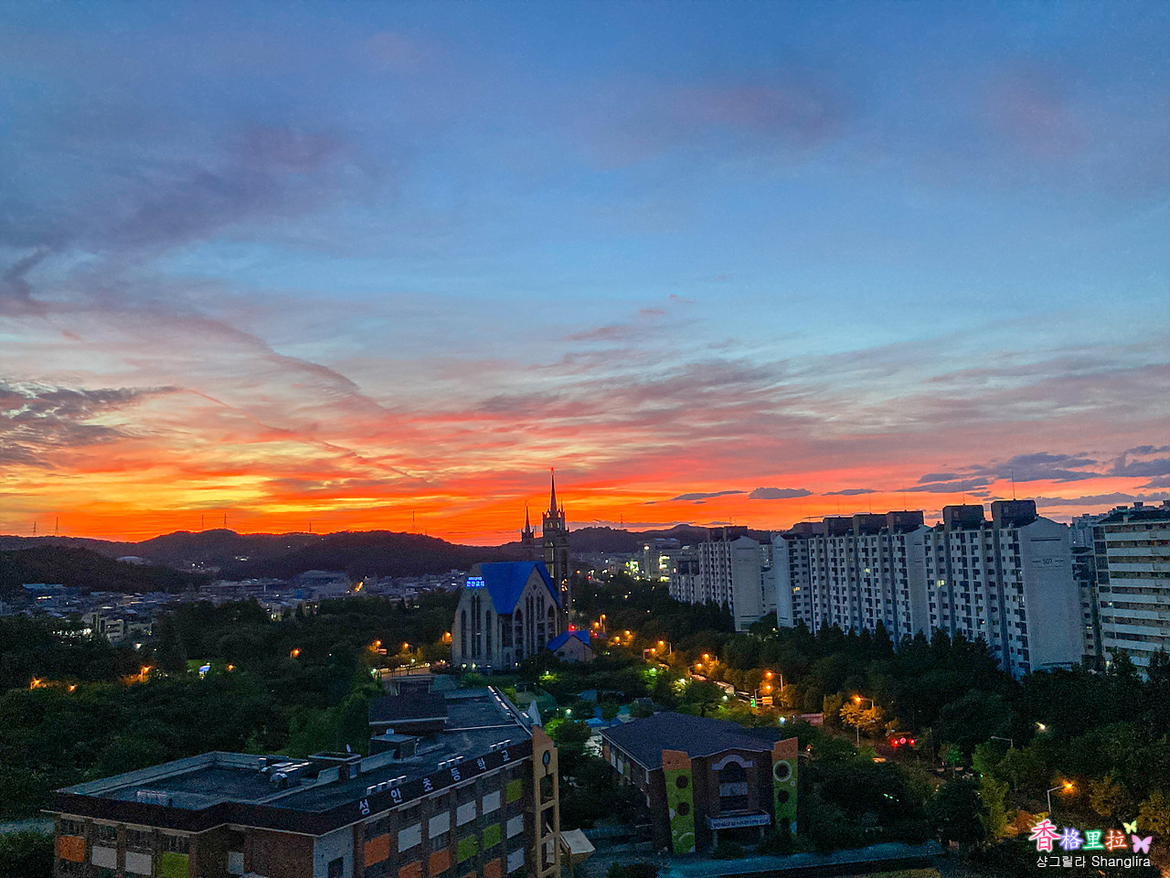 지난 밤 바람이 불더니 오늘 새벽하늘은 아름답게 붉은 여명을 보여준다.
