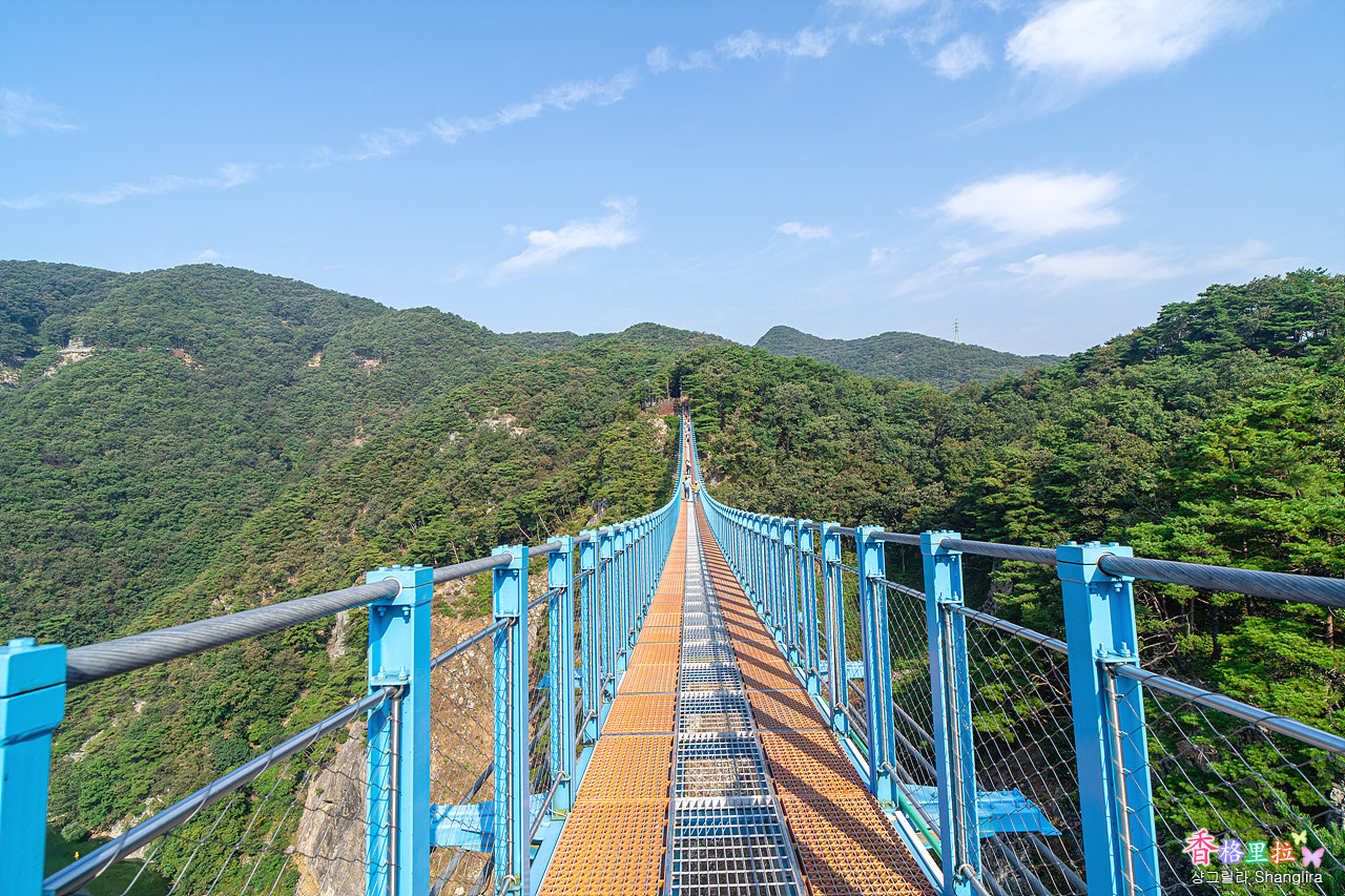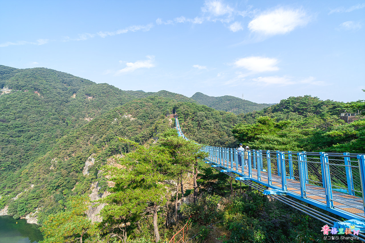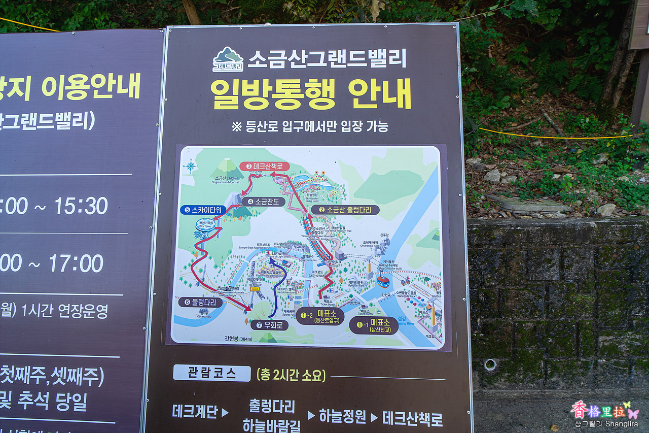 1-2 매표소→출렁다리 하늘바람길→하늘정원→데크산책로→소금잔도→스카이타워→울렁다리→하산 우회로 이렇게 돌아보는 코스로 2시간 소요된다.