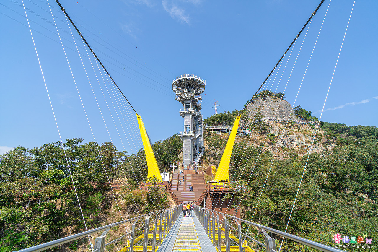 1-2 매표소→출렁다리 하늘바람길→하늘정원→데크산책로→소금잔도→스카이타워→울렁다리→하산 우회로 이렇게 돌아보는 코스로 2시간 소요된다.