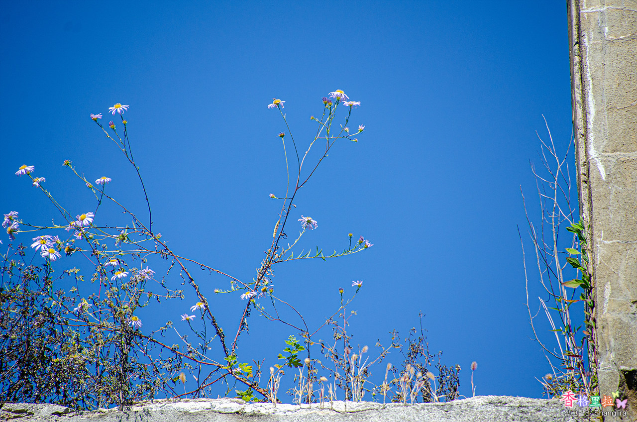 시멘트 담위에 피운 구절초.