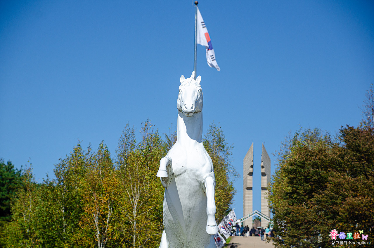 열흘 간 고지의 주인이 24차례나 바뀌었을 만큼 격렬했던 전투는 우리 군 약 3,500명, 중국군 약 1만 명의 사상자를 발생시켰으며 이 기간에 쏟아진 포탄만 28만 발정도가 된다고 합니다. 그 당시 극심한 포격으로 고지 높이가 1미터는 낮아졌고 산등성이의 나무가 모두 쓰러져 허옇게 벗겨진 모습이 하늘에서 내려다보면 마치 백마가 누워 있는 것처럼 보였다고 하여 백마고지라 부르게 되었습니다. 격렬한 전투는 대한민국 육군 9사단의 승리로 끝이 났고, 백마고지를 지켜낼 수 있었습니다. 그리고 이후 육군 제9사단은 백마부대라는 별칭을 얻게 되었습니다. 백마고지 언덕 위에는 전투에서 산화한 영령을 기리는 위령비, 전투 당시의 기록과 물품․ 김종오 장군의 유품을 전시한 기념관, 통일의 염원과 전승을 기념하는 전적비가 있습니다.