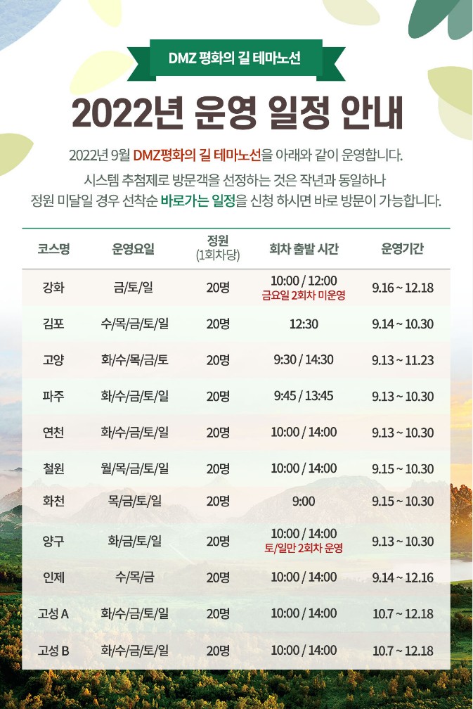 ▲DMZ 평화의 길 2022년 운영안내