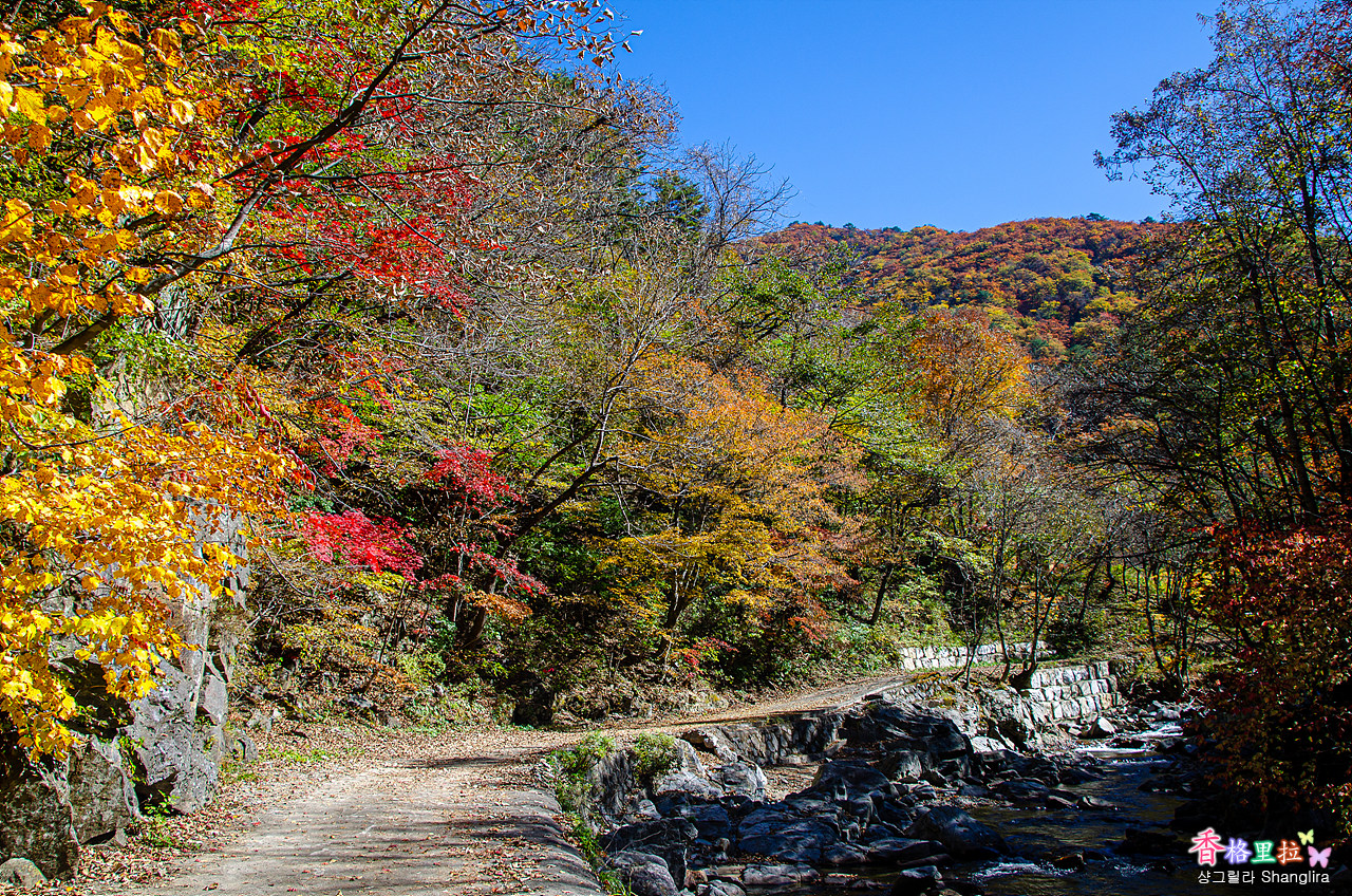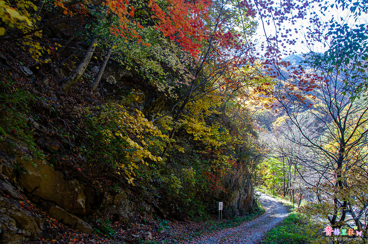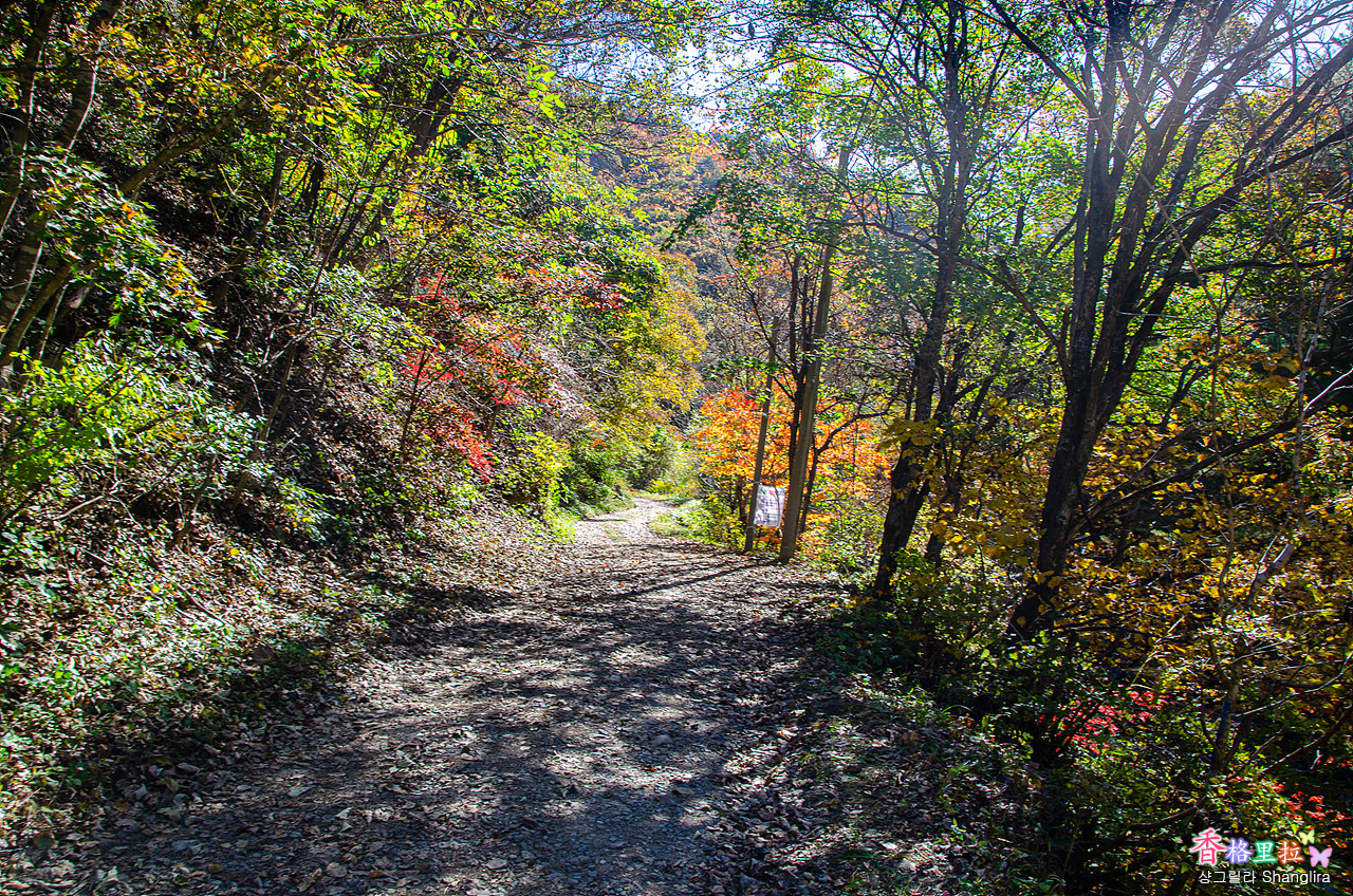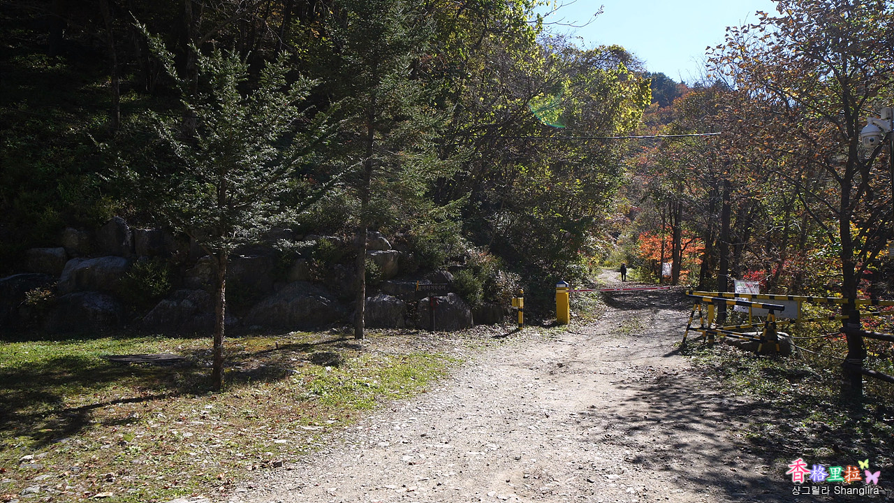 이곳에서 차를 주차하고 임도를 따라 올라가면서 단풍과 계곡 물소리를 들으며 걷기를 시작한다.