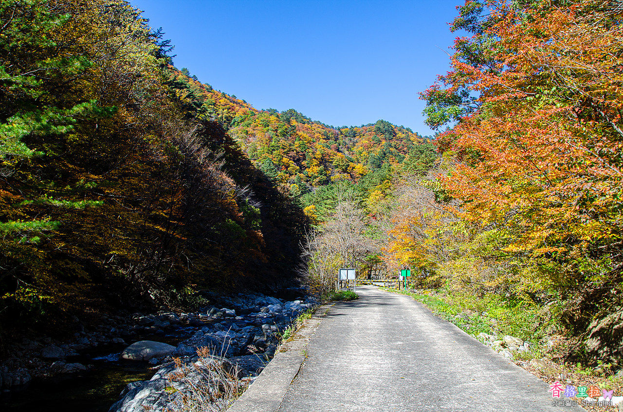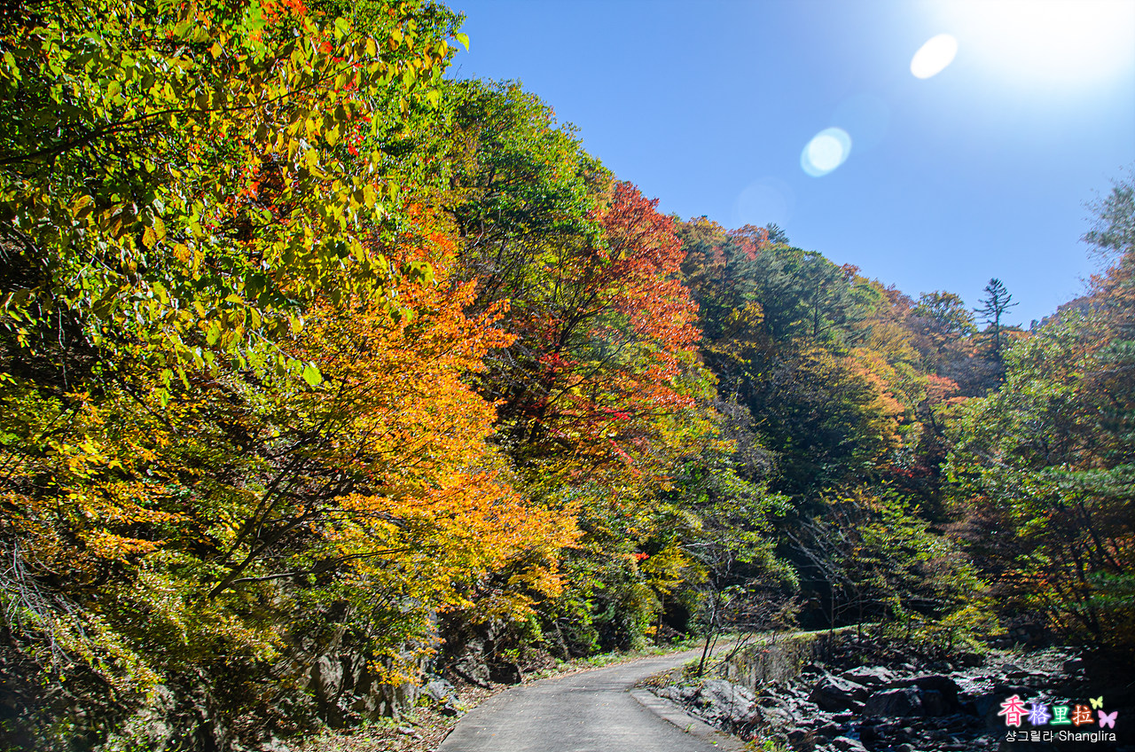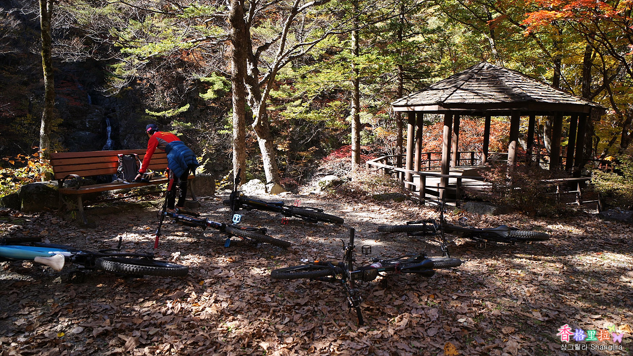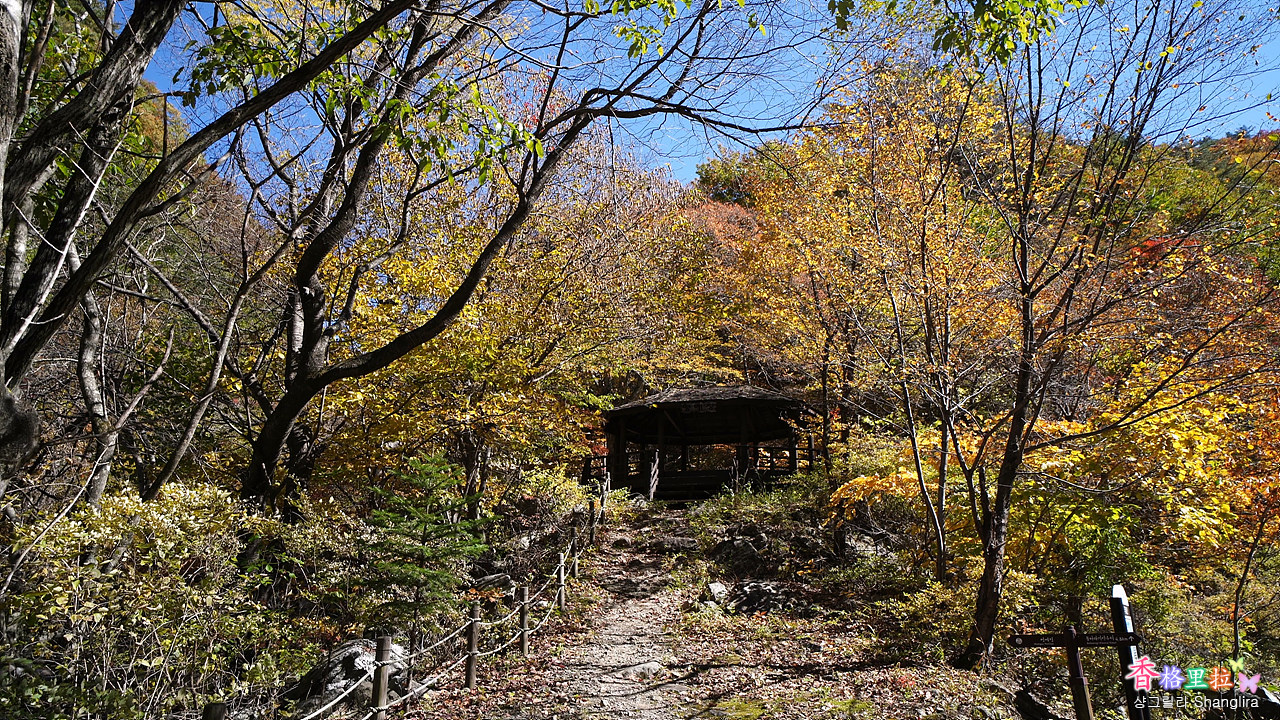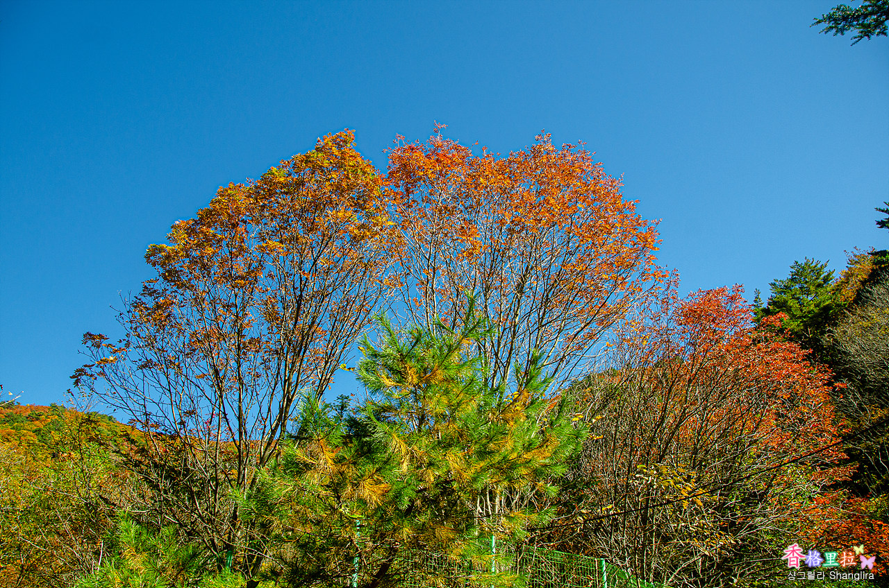 이곳에서 차를 주차하고 임도를 따라 올라가면서 단풍과 계곡 물소리를 들으며 걷기를 시작한다.