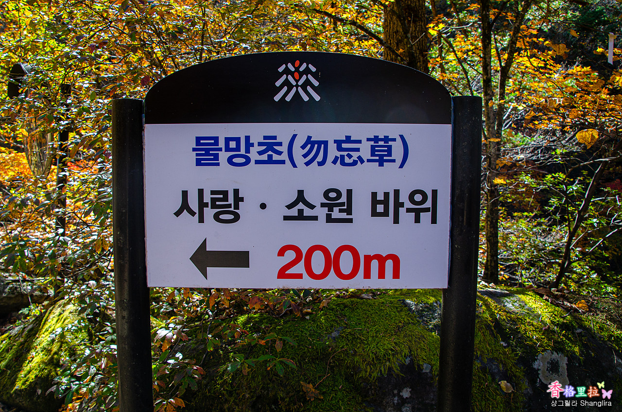 ▲물망초 사랑 소원바위 200m 안내도