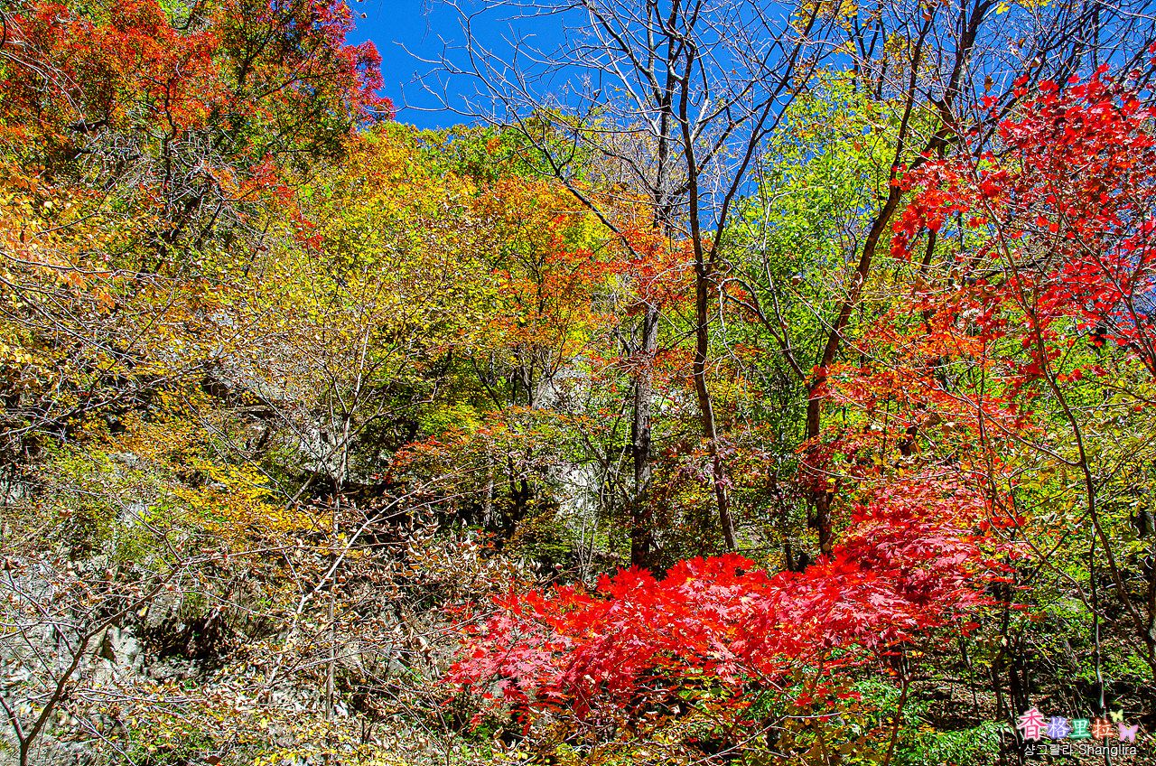 파란 하늘을 배경으로 붉은 단풍색이 너무나 곱다.