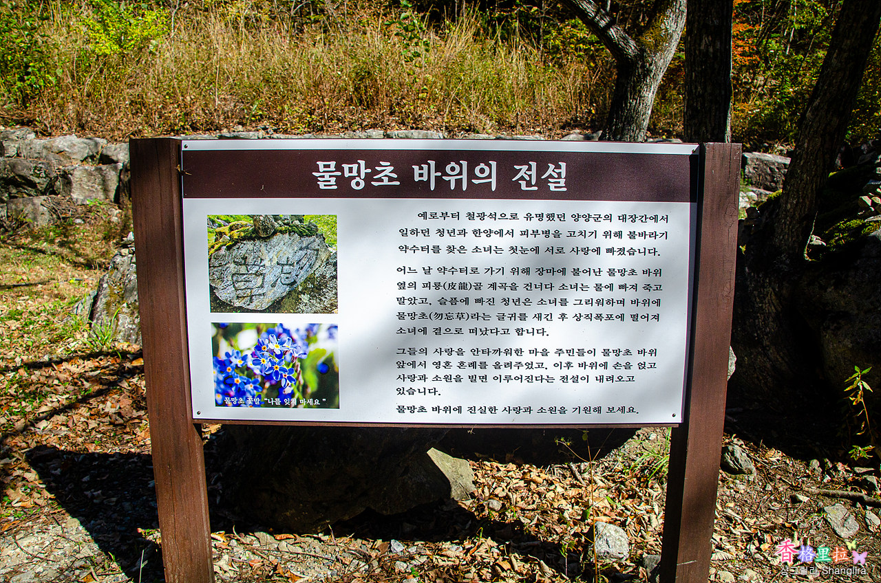 그들의 사랑을 안타까워 한 마을 주민들이 물망초 바위 앞에서 영혼 혼례를 올려주었고, 이후 바위에 손을 얹고 사랑과 소원을 빌면 이루어진다는 전설이 내려오고 있습니다.
