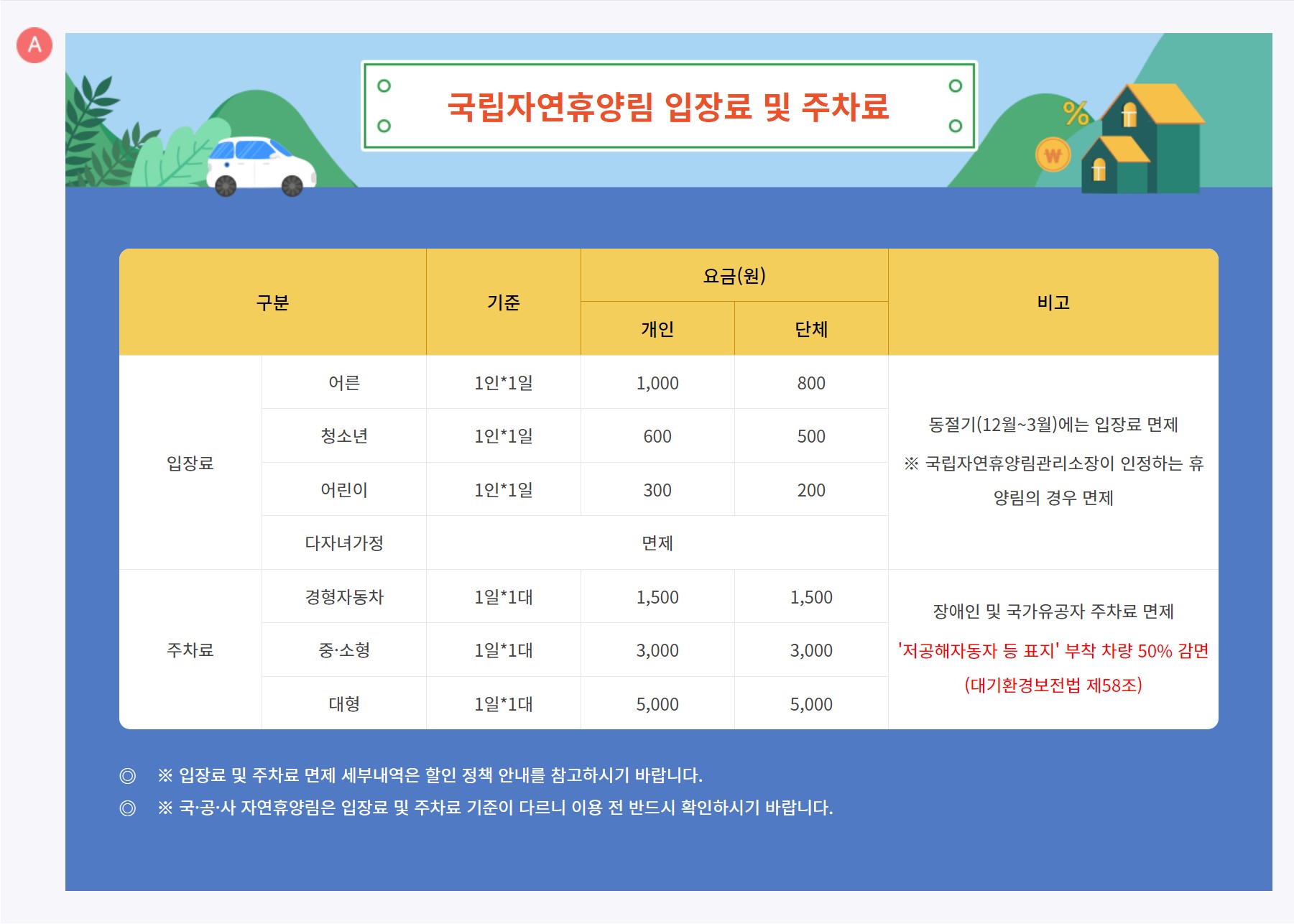 입장료는 1,000원, 주차비 3,000원이다.