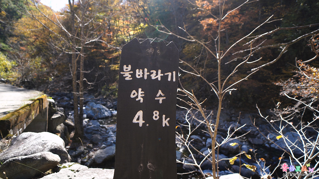이곳에서 차를 주차하고 임도를 따라 올라가면서 단풍과 계곡 물소리를 들으며 걷기를 시작한다.