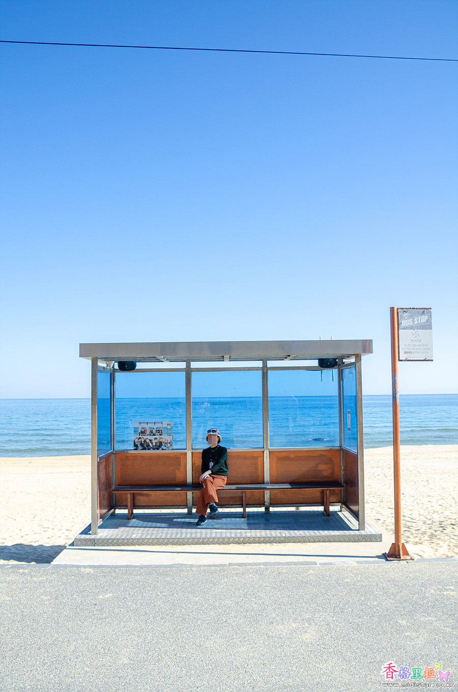 가보니 해안가 옆에 버스 정류장 부스가 있고 아무것도 없다. 실제 버스가 다니는 길도 아니고 해변가 일방통행길 옆에 있었다.