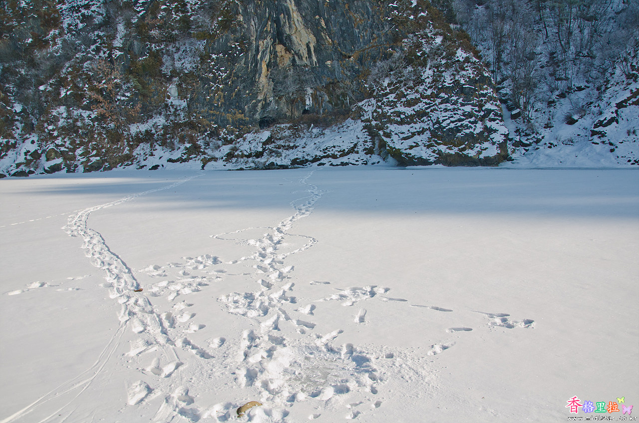 응암굴(鷹岩屈)을 보려면 꽁꽁 얼어붙은 강을 건너가야 한다. 작은 동굴 2개가 보인다.
