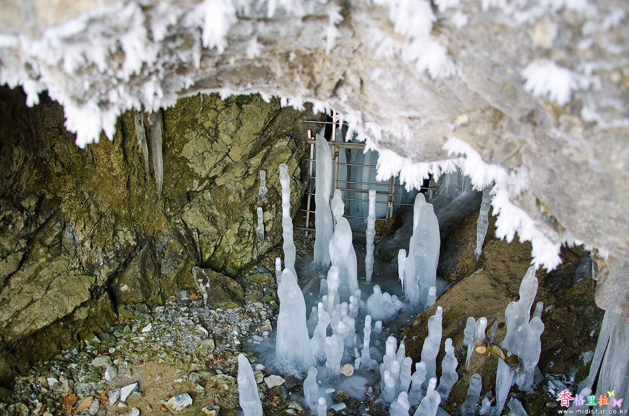 강원도 평창군 미탄면에 위치한 응암굴(鷹岩屈)로 역고드름을 보러 갔다.