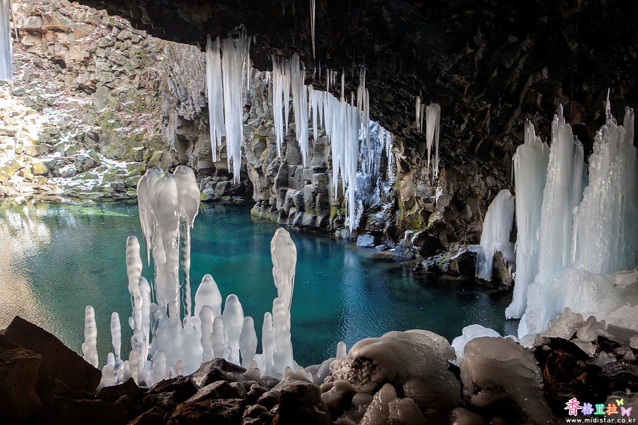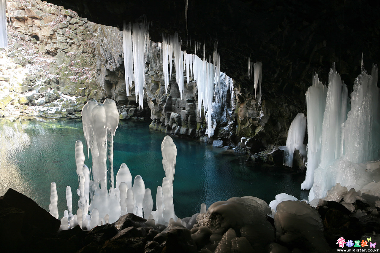 겨울에는 찾아가 보았자 흘러내리는 폭포를 볼 수 없지만 짙은 푸른색 아름다운 물빛을 볼 수 있다.