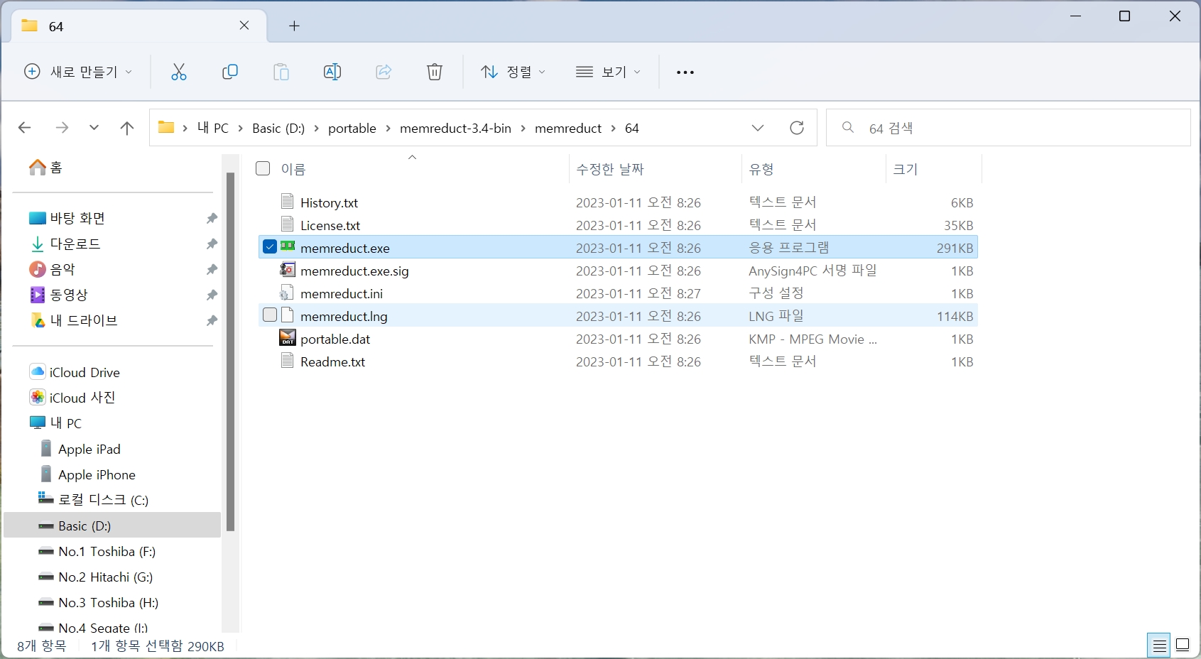 느려지는 컴퓨터 Mem Reduct 로 메모리 정리