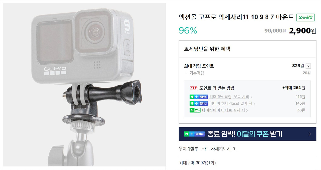 볼헤드와 결합할 수 있는 액세서리도 찾아보았는데 딱히 Osmo Action 3에 맞는 액세서리가 없어서 고프로(Gopro)용 액세서리를 구입했다.
