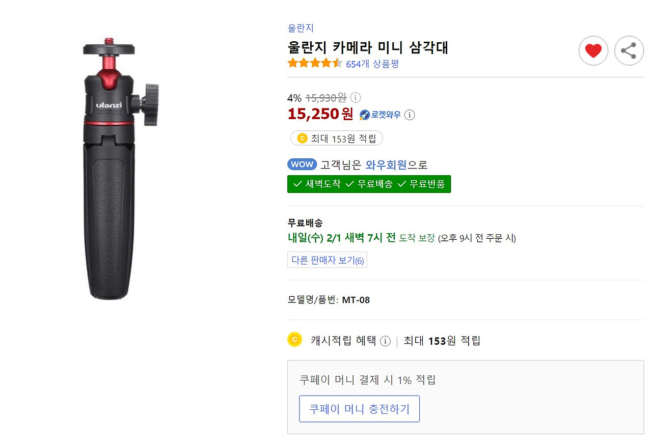 나는 울란지(Ulanzi) 미니삼각대 MT-08을 선택했다. 왜냐하면 볼헤드가 달린 미니 삼각대이기 때문이다.