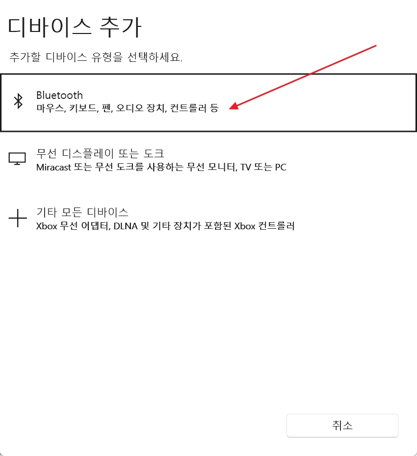 디바이스 추가 화면에서 Bluetooth를 클릭한다.