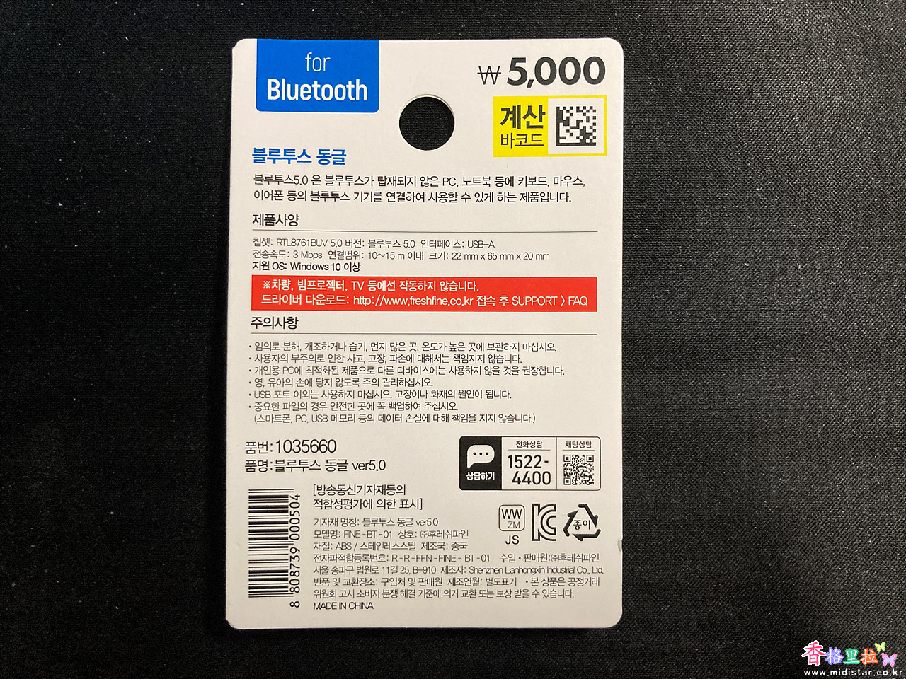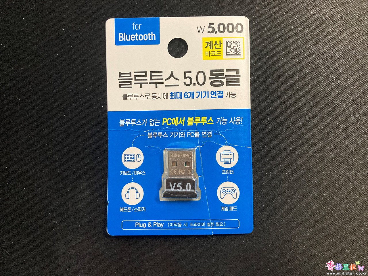 우리 동네 다이소에는 블루투스(Bluetooth) 동글이를 팔지 않아서 못 사고 있던 차에 금천구에 있는 마리오 아웃렛에 볼일이 있어서 갔다가 아웃렛 1관에 있는 다이소에 구경하러 들어가서 블루투스(Bluetooth) 동글이 있는 걸 보고 냉큼 집어왔다.