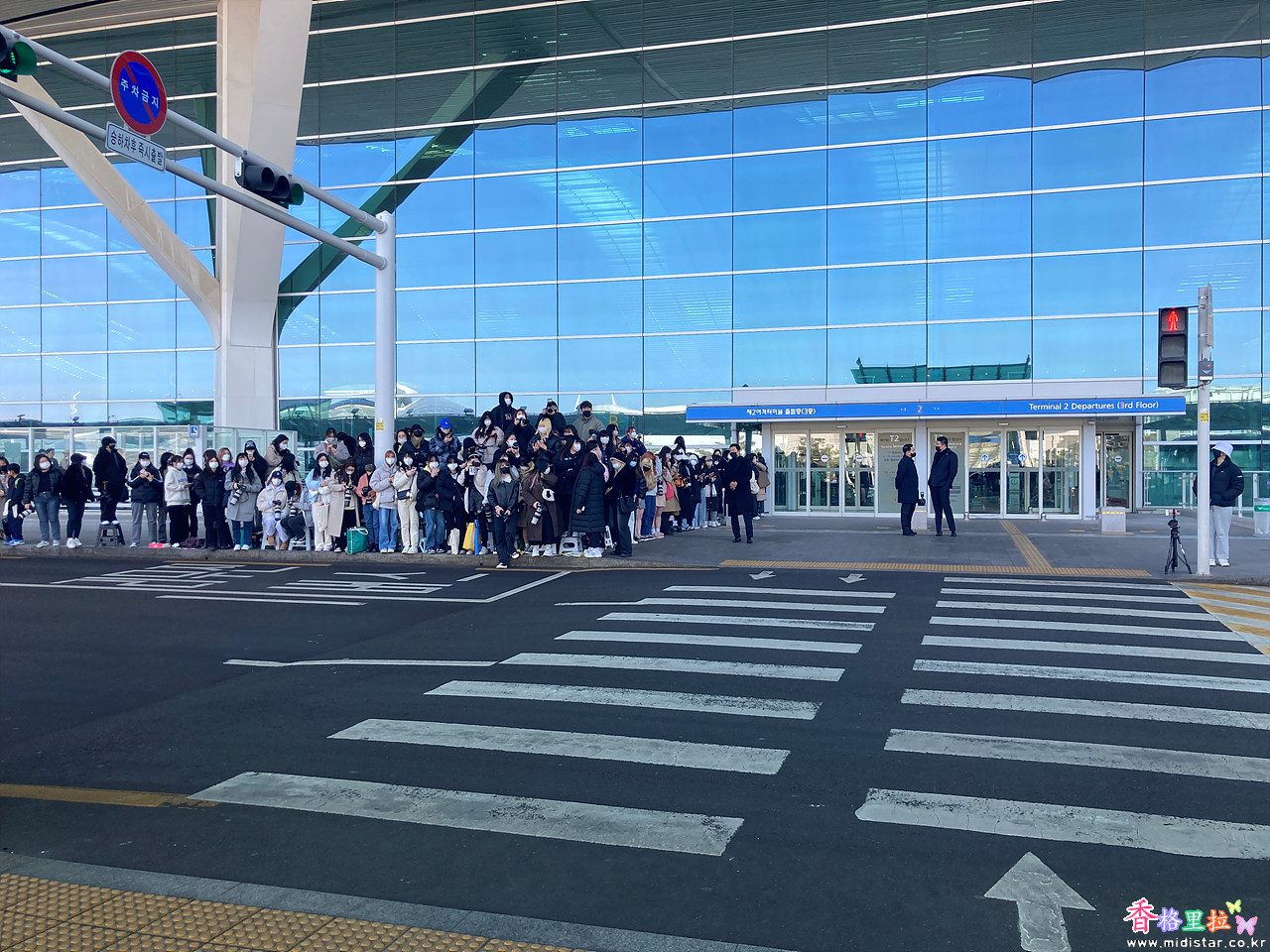 아들이 출국장 안으로 들어가는 것을 보고 난 후 주차장을 가려고 밖으로 나와 도로를 건너려는데 입구 쪽에 스마트폰부터 대포 SLR을 장착한 사람들이 줄지어 도열해 누군가가 도착하기를 기다리고 있었다.