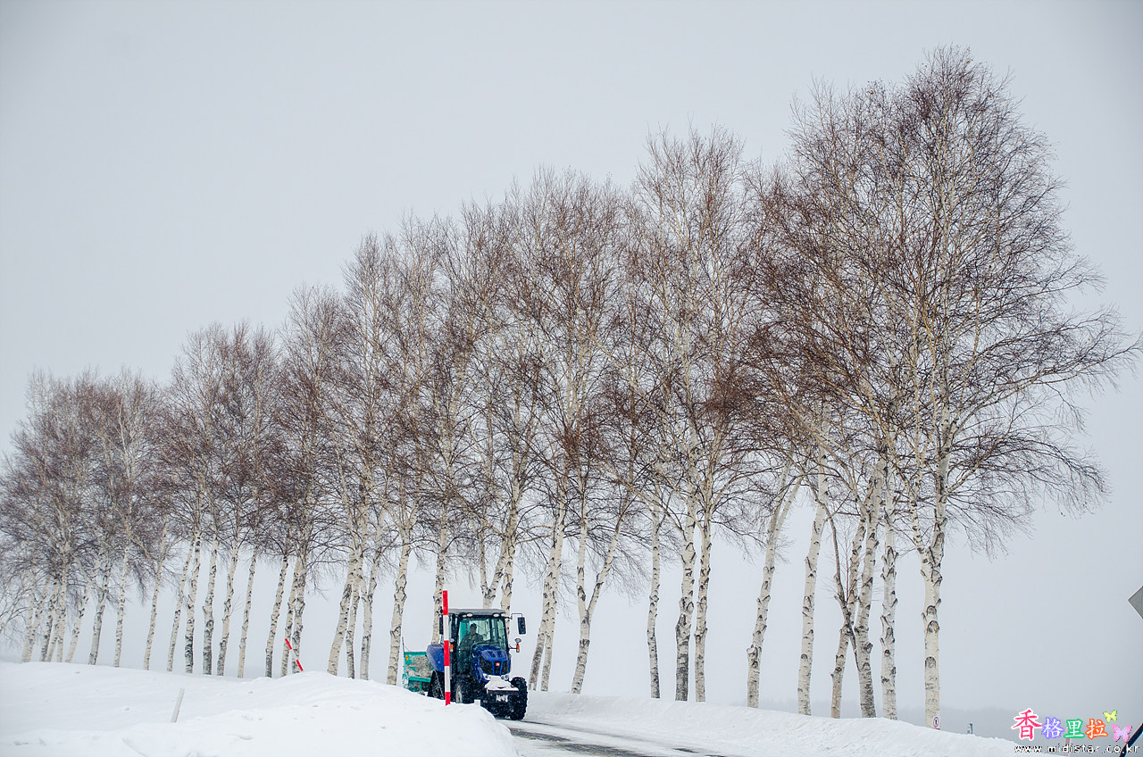 고속도로를 벗어나 비에이(美瑛)로 접어들어 세븐스타트리 언덕으로 가는 작은도로는 제설작업이 완전히 안되어 눈길이다.