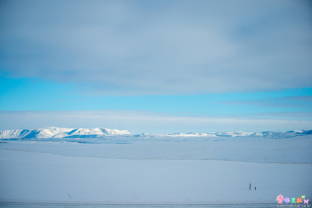 고다포스(Goðafoss) 가는 길은 허허벌판에 먼 곳에 설산이 가끔 보이는 길이다.