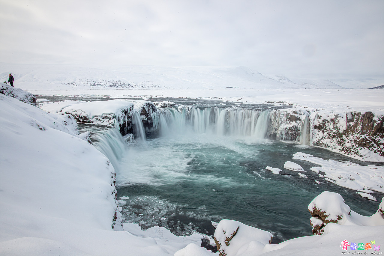 고다포스(Goðafoss)는 높은 곳에서 떨어지는 폭포가 아니라 평지에서 아래로 떨어지는 폭포이다.