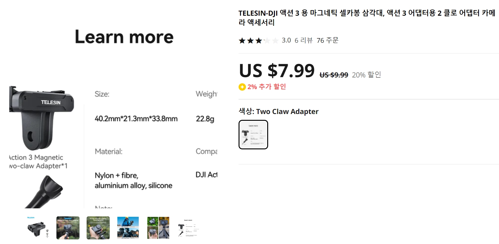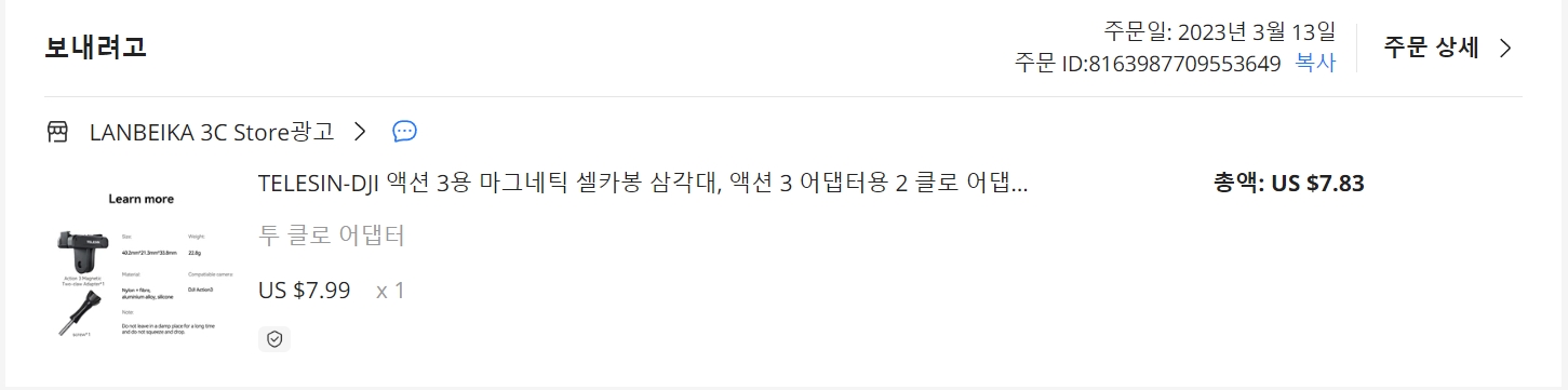 지난 3월 13일 주문한 DJI Osmo Action3용 자석 투 클로 어댑터가 9일 만에 도착했다.