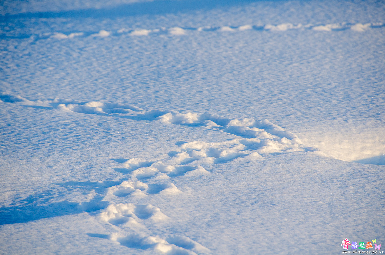 짐승들의 발자국 흔적만이 남아 있는 눈을 담아본다.
