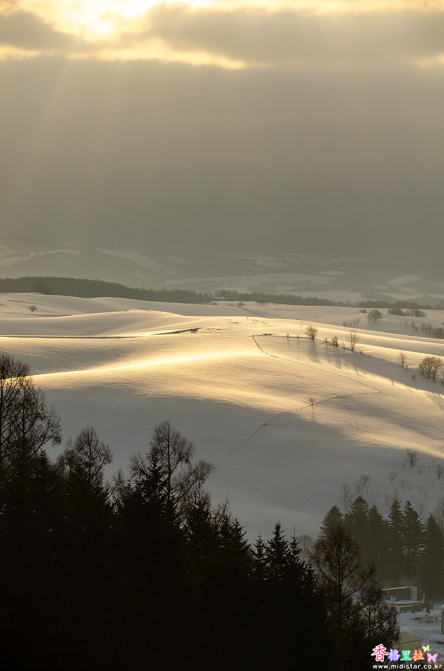오늘은 일기예보가 맑음으로 나와 비에이(美瑛) 五稜の丘(오릉의 언덕)에서의 멋진 일출을 기대하며 도착했지만 동녘 하늘은 구름이 잔뜩 끼어 실망.