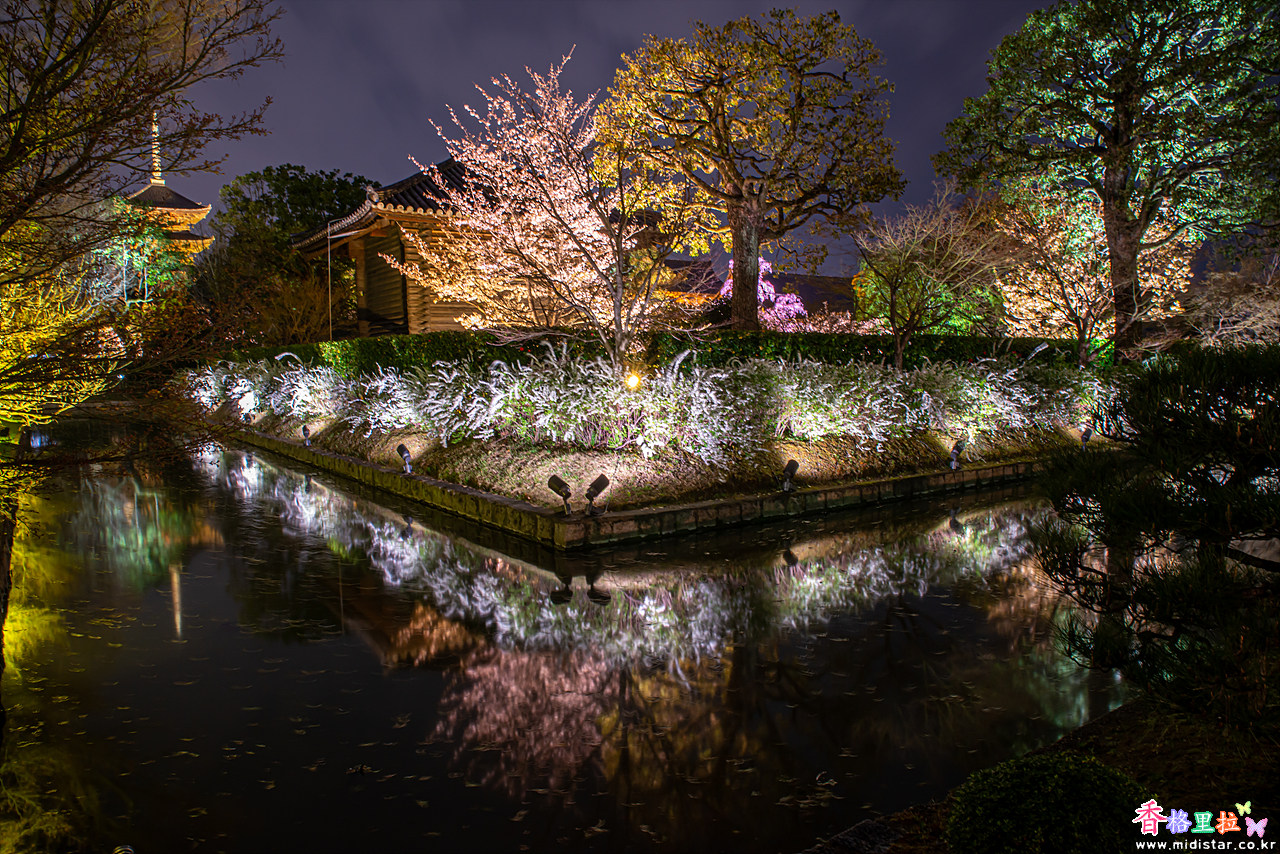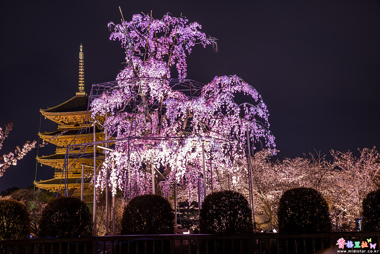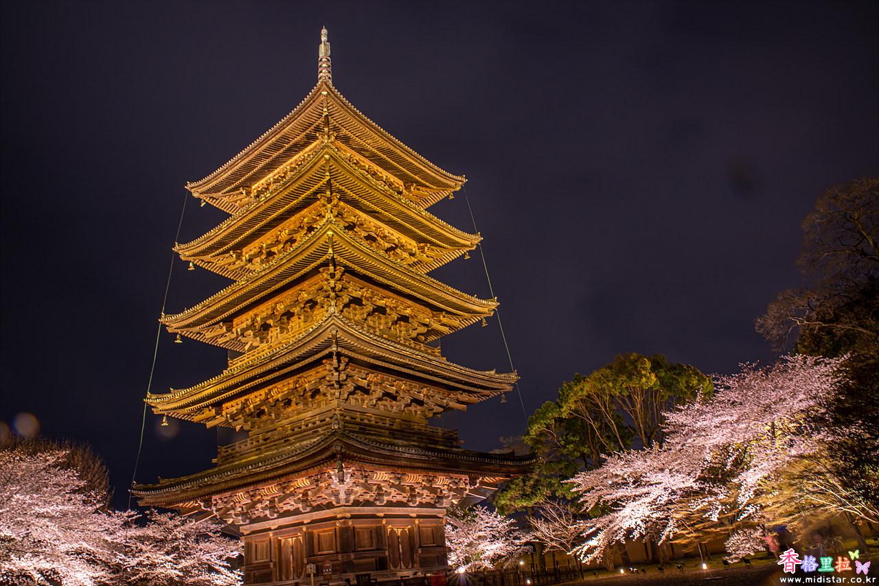 일본 교토의 벚꽃시즌에 야경을 관람하러 많이 찾는 도지(東寺)는 이 기간 야간 관람료도 비싸게 받는다.
